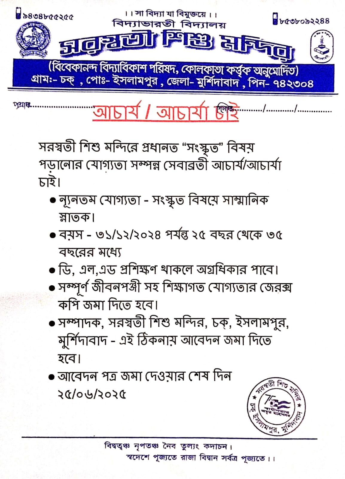 NEW RECRUITMENT NOTICE FOR " SANSKRIT" TEACHER, LAST DATE FOR APPLY, 25/06/2025
